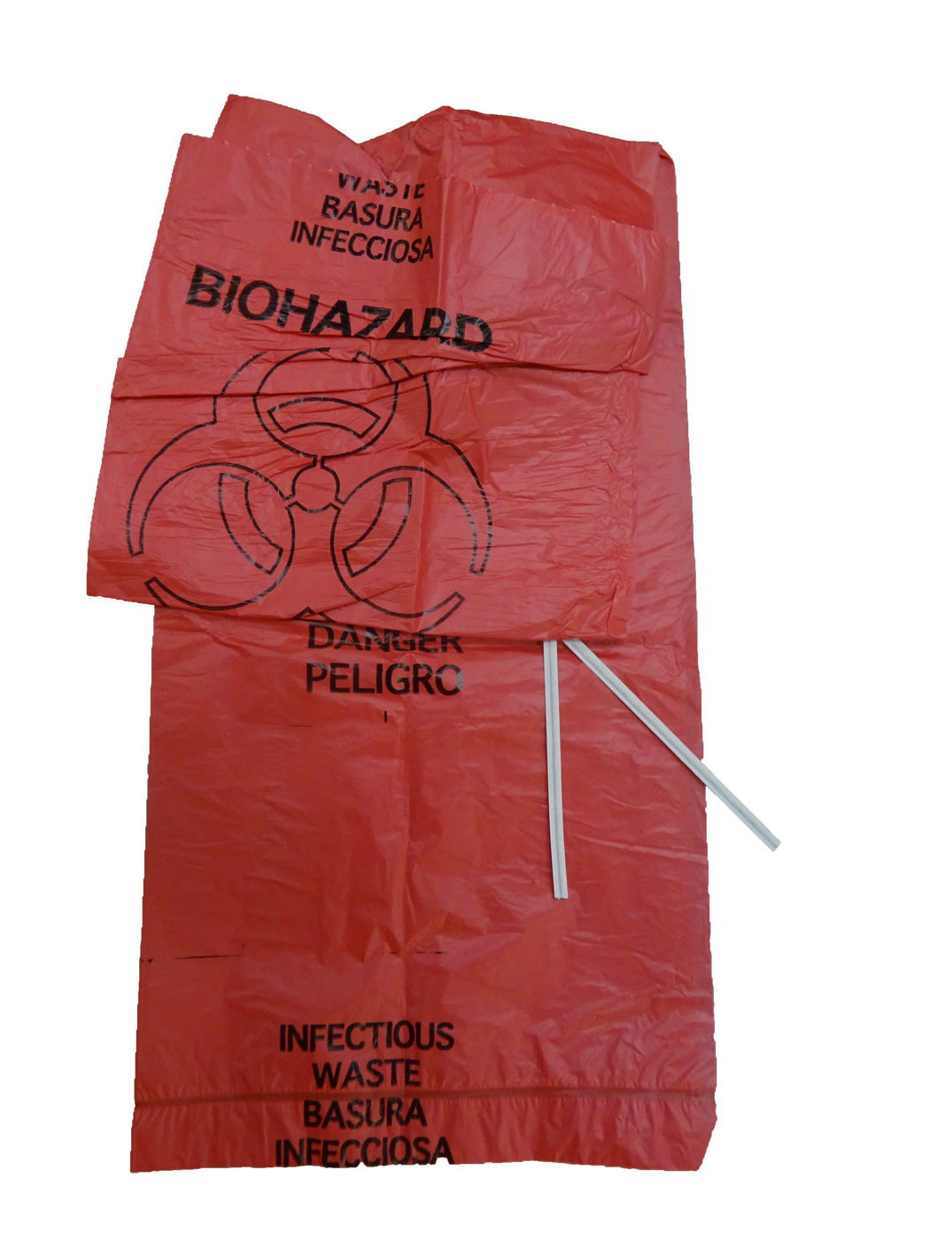 Untreated contaminated clothing, shoes, towels, gauze used for first aid, etc. must be disposed of in double-thick red biohazard disposal bags.