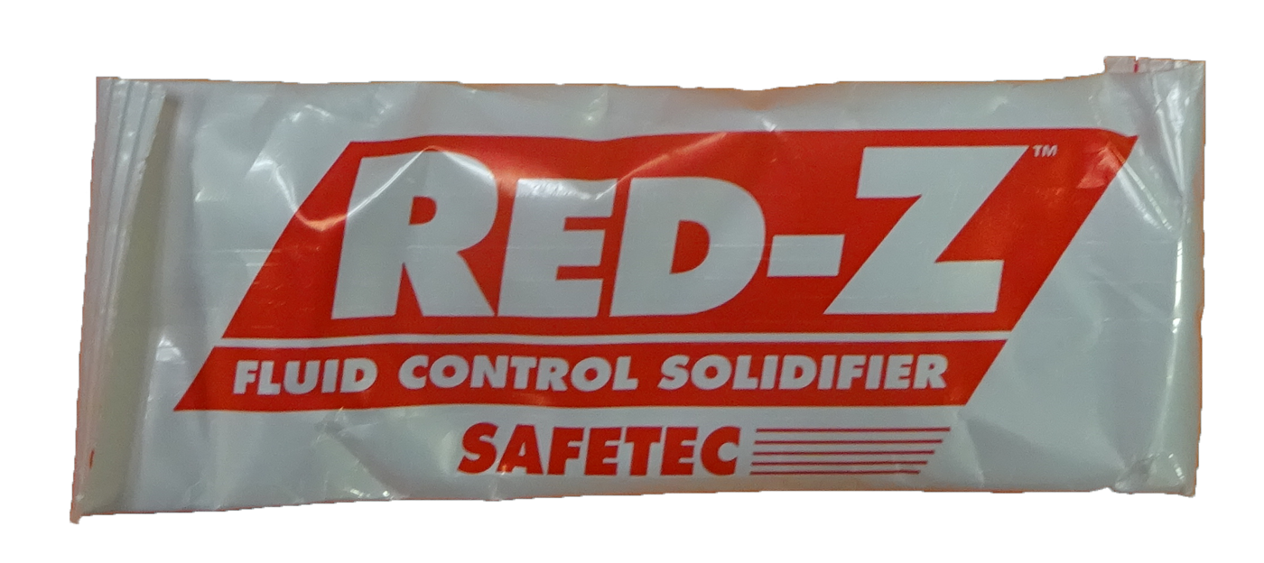 The solidifier is used to absorb blood or OPIM. After the materials are absorbed, the residue can be collected and discarded in the red biohazard bag