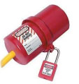 Lockout the energy isolating devices with the specially assigned red individual locks. Use yellow cylinder boxes to lock out plugs, quick disconnects, or remote switches. Sign, date, and attach Lockout Identification Tag through the lock pin.