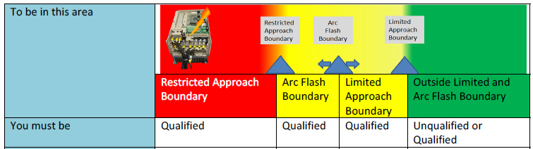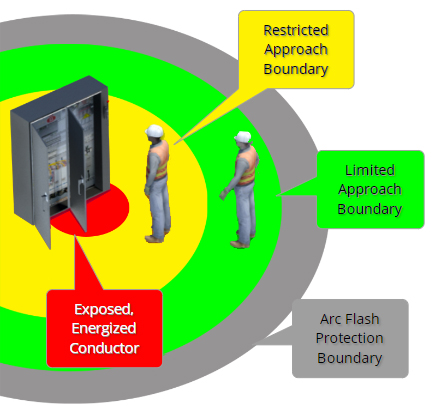 | Flash Protection Boundary | Distance beyond which appropriate flash protection equipment is required to prevent incurable 2nd degree burns. NOTE: The flash protection boundary can be inside or outside of the limited approach boundary. |