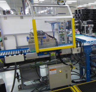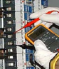 Production test in BG uses barrier to shield the worker from the exposed conductors. |