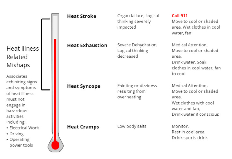 - Ensuring that all affected associates are trained on heat illness prevention.