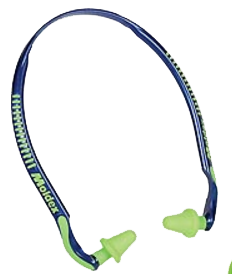 Ear muffs consist of sound-attenuating material and soft ear cushions that fit around the ear and hard outer cups. They are held together by a head band.