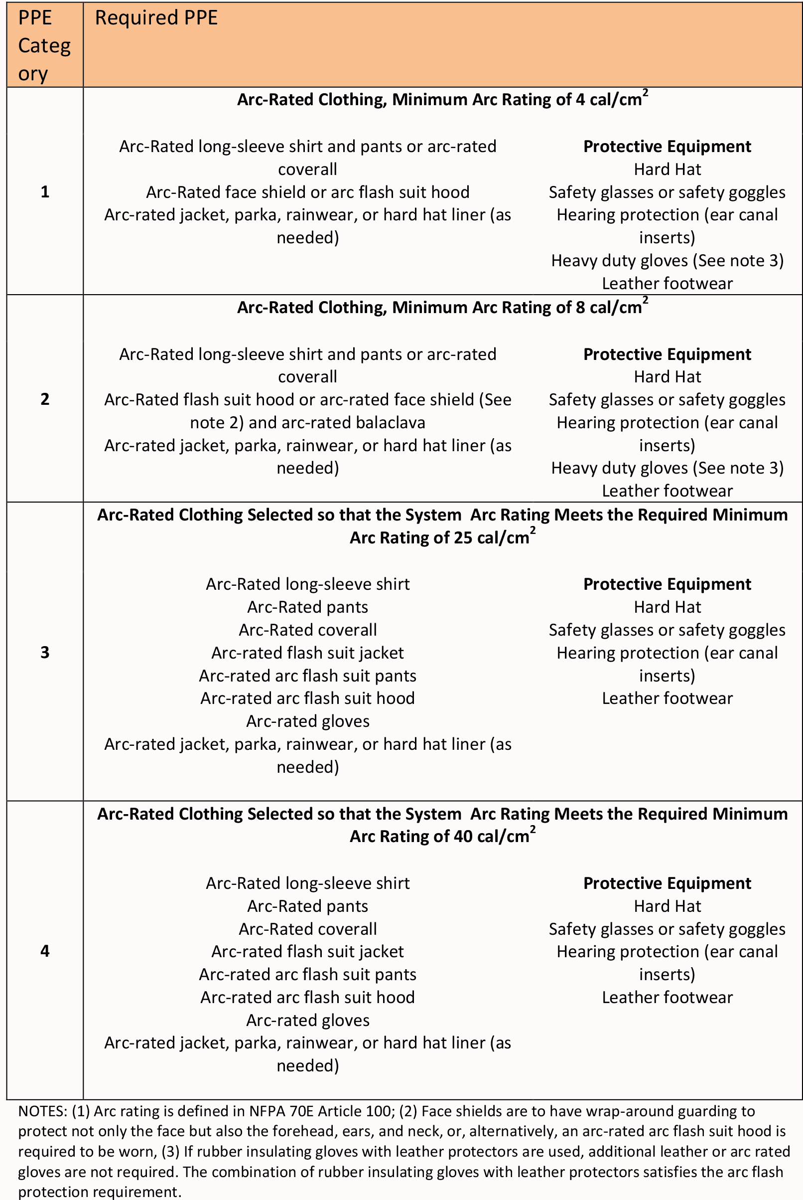 When the arc rating is below 1.2 cal/cm2, the following PPE is required: