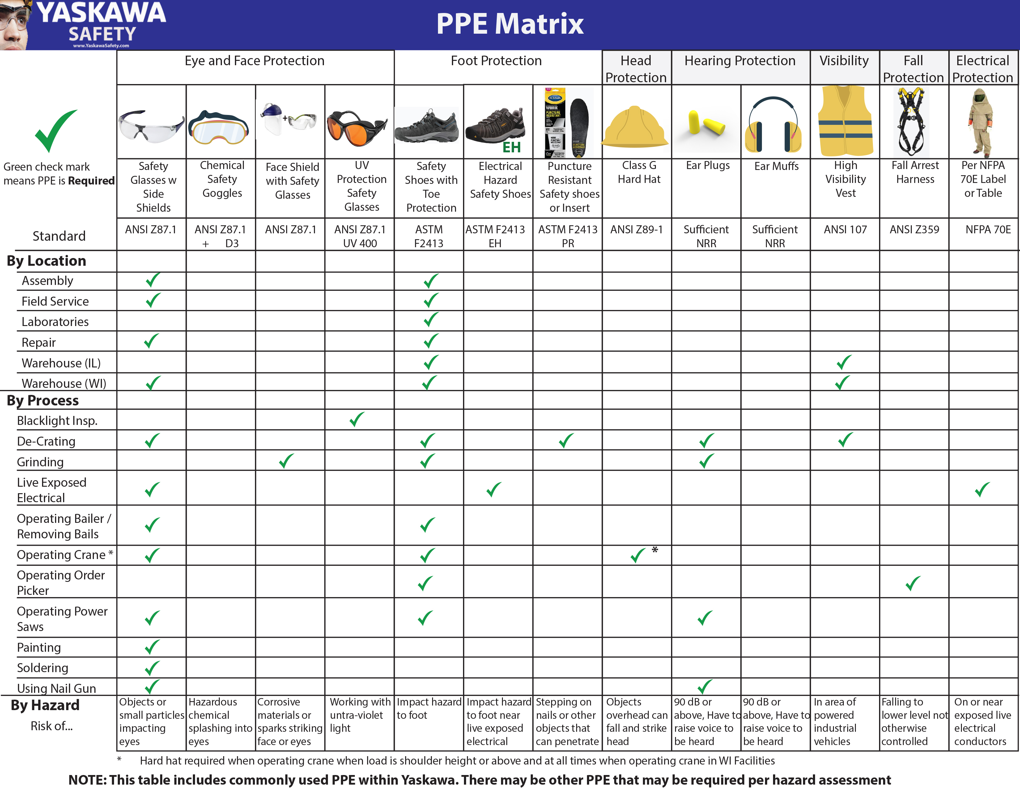 General PPE training is included in Safety Orientation Training. Records are maintained in Yaskawa’s Learning Management System.