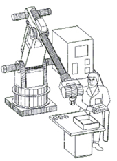 A person doing the teaching has physical contact with the robot arm and actually gains control and walks the robot’s arm through the desired positions within the working envelope. During this time, the robot’s controller is scanning and storing coordinate values on a fixed time basis. When the robot is later placed in the automatic mode of operation, these values and other functional information are replayed and the program is run as it was taught.