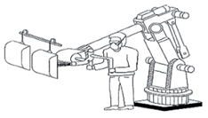 This method of teaching uses a proprietary teach pendant (the robot’s control is placed in a “teach” mode), which allows trained personnel physically to lead the robot through the desired sequence of events by activating the appropriate pendant button or switch. Position data and functional information are “taught” to the robot, and a new program is written. When using this technique of teaching or programming, the person performing the teach function can be within the robot’s working envelope, with operational safeguarding devices deactivated or inoperative.