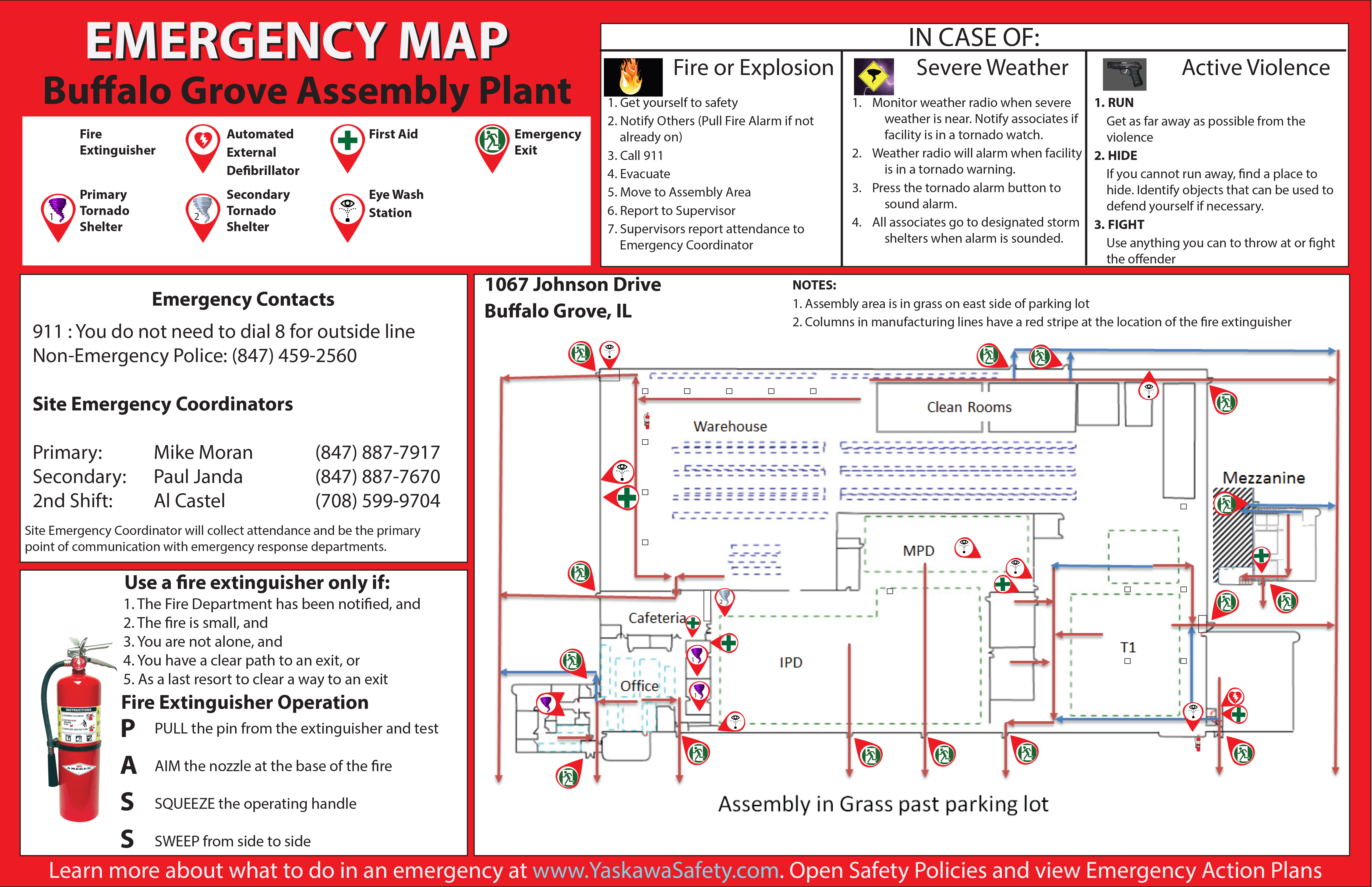 If none of the emergency coordinators are present, another member of Yaskawa management shall assume Emergency Coordinator responsibilities.