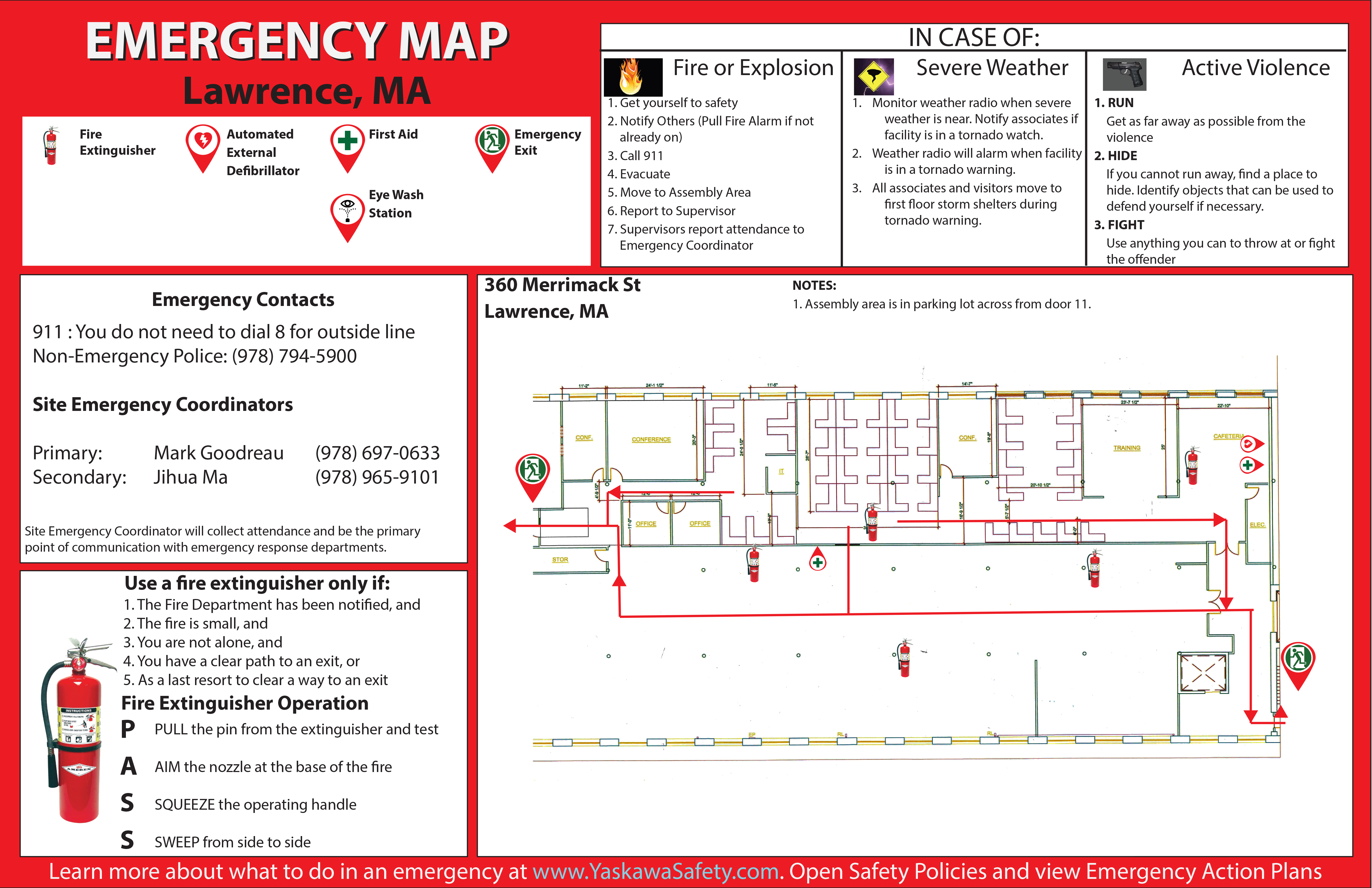 If none of the emergency coordinators are present, another member of Yaskawa management shall assume Emergency Coordinator responsibilities.
